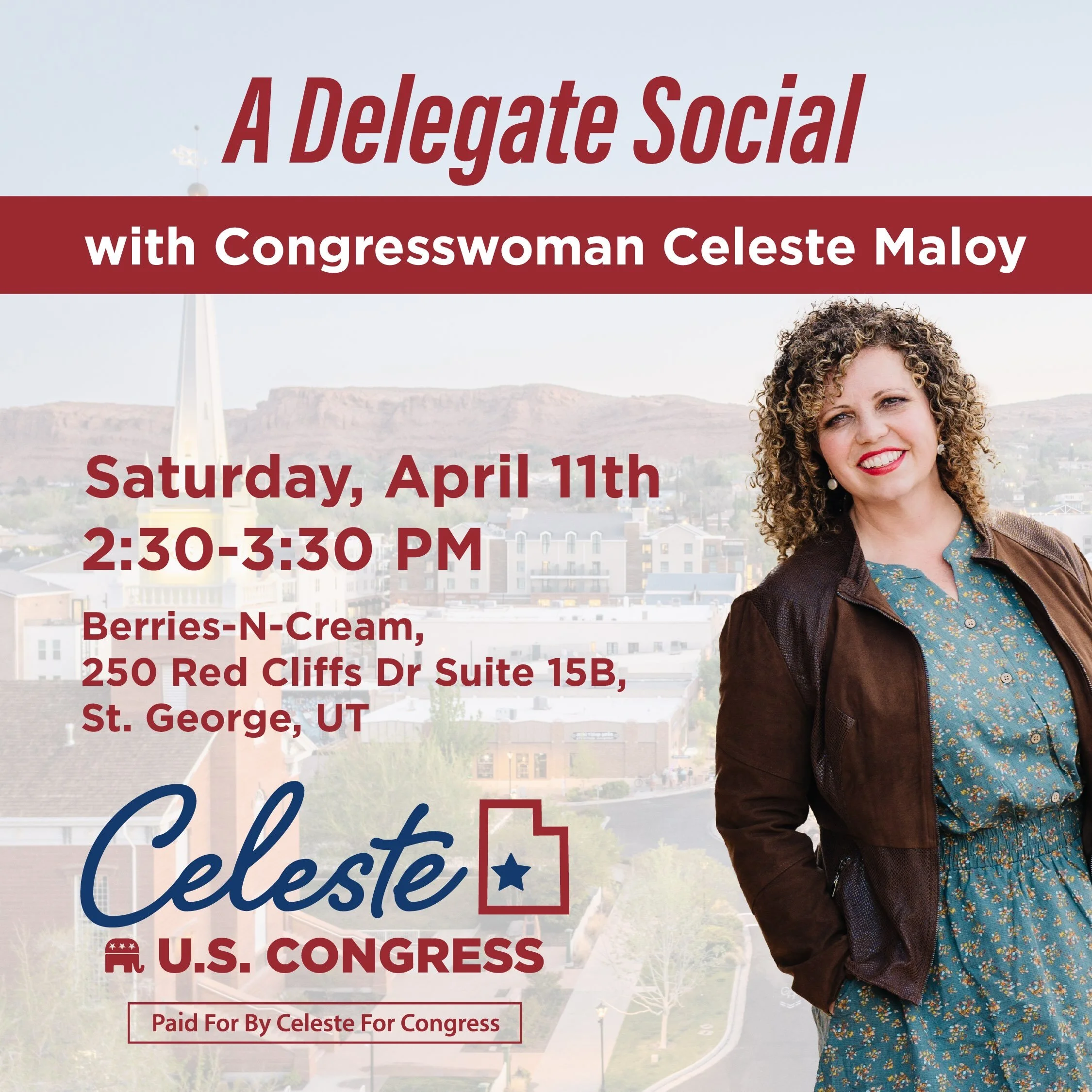 Washington County Delegate Social at Berries-N-Cream in St. George from 2:30-3:30 PM, 250 Red Cliffs Dr Suite 15B, St. George, UT 84790